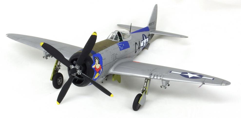 Here is his Hasegawa P-47D-30 Bubbletop Thunderbolt panted with Gunze Mr. Color, Quickboost resin seat, Superscale decals, and weathered with Ammo by Mig washes and pastels. He used the insulation off a wire for the gun barrels…Clever!