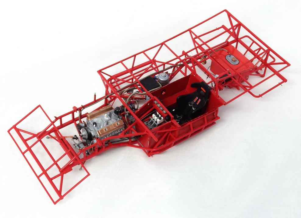 President JR Burggren brought in a WIP…which he has only been working on for 16 years! Hey, these things take time! The shell is vacuum formed but will have many of JR’s tweaks. It will be a late model wedge design dirt car. Everything you see in red is scratchbuilt. It will have working everything. I will give him another 16 years but that’s it! I have my limits!