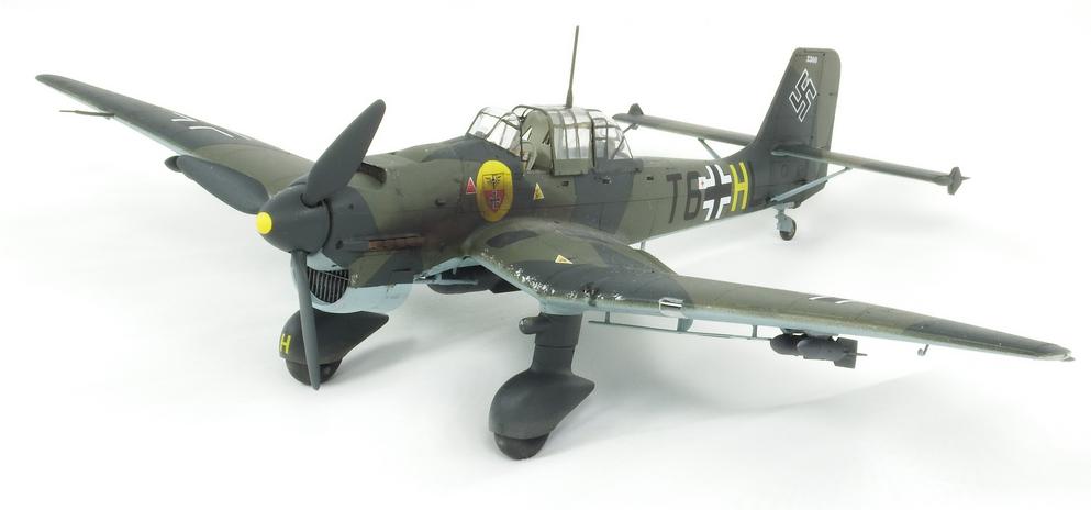 Doug Seekman brought in three 1/48 Greman WWII aircraft. First up is his Promodeler/Hasegawa Ju-87B/R2 Stuka. Painted with Gunze Mr. Color, QuickBoost seats, and decals by Three Guys Replicas. He did his weathering with Ammo by MIg washes and pastels. Plane was used during the Battle of Britain.