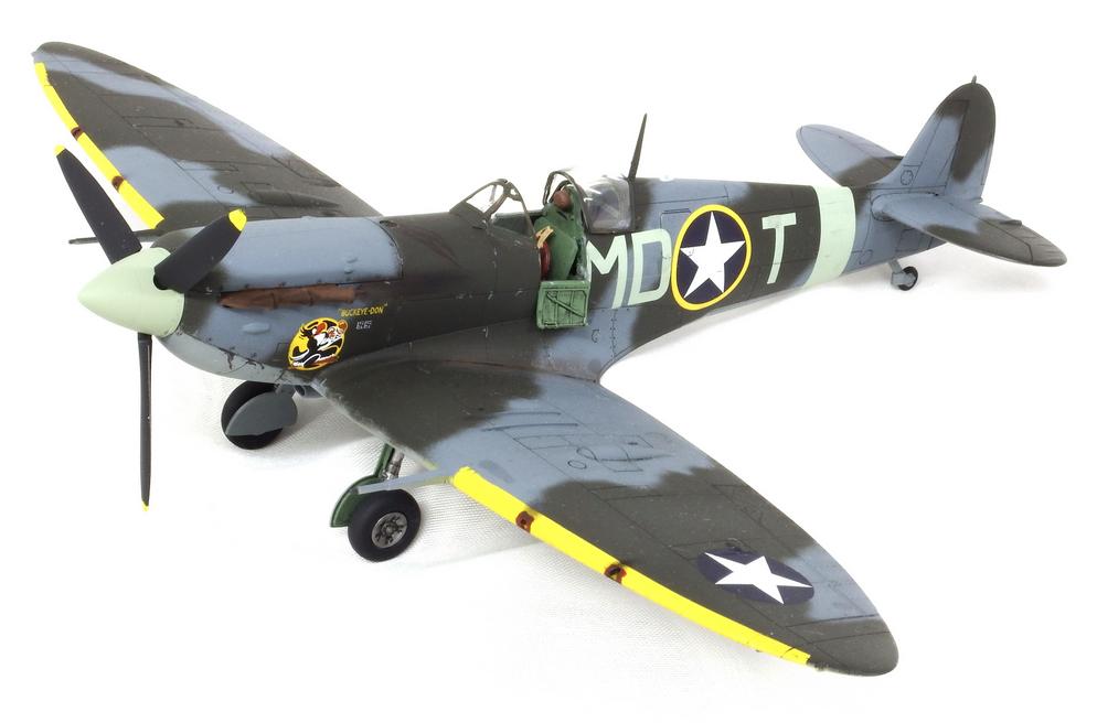 This is the Tamiya Spitfire MKV(?) painted with Tamiya Acrylic,Ultracast resin seat, Eduard 3D interior, Aero Master decals, and weathered with Ammo by Mig washes and pastels.
