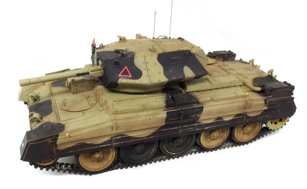 Mark Welchk brought in another big one! This is from a new company out of China, Coolbrook and is the Crusader III MkVI. This amazing RC tank has working metal suspension, 360 degree turret rotation, gun elevation, 3 LED lights, the machine gun flashes red when fired, main gun flashes when fired. There are headlight and a searchlight, and a ddSchool controller (?). Marked as 1st squadron/2nd Dragoon Guards/2nd Brigade/1 Armored Division,2nd El Alamein. That is impressive…but we were disappointed it didn’t fire live ammo at Seekman!